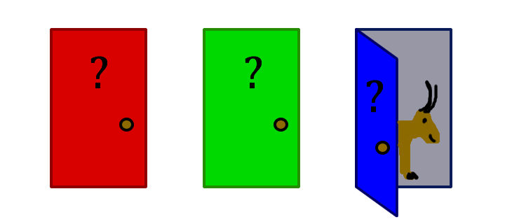 A goat is hidden behind one of three doors. Select a door and the watch will open one of the two other doors (that doesn't have the goat). Now select again. Will you switch doors or keep your first choice?