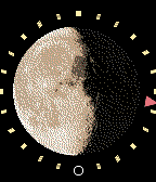 * Moon for Northern Hemisphere is a watchface derived from Decelerate Northern Hemisphere watchface * Main display is showing the current Moon Phase nearly in full screen * Decelerate your day with a less stressful time display * Exact time is shown by analog hour hand represented by a small triangle only or as numerical digital display on acceleration event * On Accelerometer Event more time information like Calendar Week, Weekday, Day, Month, Year is shown The watchface shows a single hour hand only. The hour hand is represented by a triangle. Midnight is on bottom of the watchface while Noon is indicated on top. One rotation of the hour hand takes a whole day. On Accelerometer Event of the watch more detailed time information is displayed for a specific while. On timeout the display toggles back to normal view. If holding the Pebble watch parallel over ground and turning it so the hour hand is pointing towards the sun then top of the watch face will always point in south direction and bottom of watch face in north direction on northern hemisphere (Compass feature). Mind the difference of southern hemisphere and northern hemisphere: On southern hemisphere top of the watch face will indicate north direction while bottom of watch face is oriented south. The current Moon phase is shown for northern hemisphere. Moon phase display is expected to work until end of Unix Time (overflow on Jan 19th, 2038 03:14:07 GMT) at least as implemented here. For simplicity the axis of the Moon is shown vertically on the watch face only.