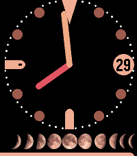 Clean analog watchface, colors configurable. Shows all phases of the Moon followed by a progress bar indicating the current phase of the Moon. BT lost warning (with optional buzz). Battery status indicator in the 9 marker. Exclusive for Pebble Time 2. Price $1.99 with a free one day trial.