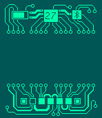 A PCB/circuit watch face for Hackster meetup group. Shows date, battery level and bluetooth status up top. Day of week on bottom being the filled in square. Change colors in settings.
