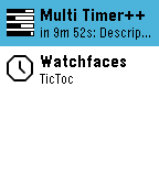 This is a remix of the Multi-Timer app of Matthew Tole with a few added features: - Set descriptions for each timer - Dictate descriptions - Timeline Support (for the next timer) - AppGlance Support (for the next timer) After a trial period of 24 hours, this app will cost USD 1.50 (+ taxes), which will be handled via KiezelPay.