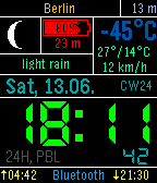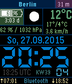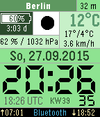 - time including seconds (sec. can be disabled or displayed on shaking)