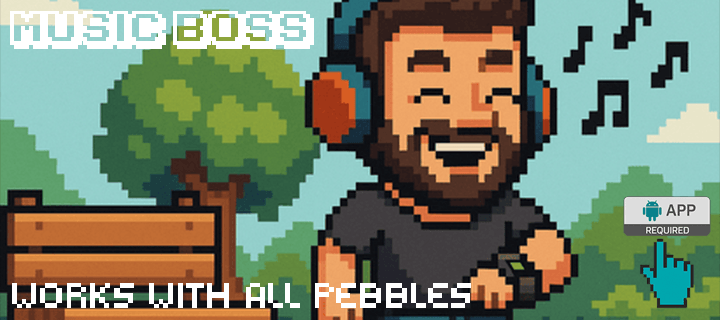 Visit musicboss.ca to get the companion app. Music Boss Time is a watch app disguised as a watch face. Keep it on all day as you go about your daily hustle. Music Boss Time features an album art–focused main screen with the time and date prominently displayed. Track progress ticks away to keep you informed on the current song. Customize visual elements to suit your style, and enjoy built-in media controls, volume support, and customizations for a truly personalized Pebble Music experience. 🎵 Play, pause, skip, and seek tracks from your Pebble 📺 Control apps casting to external displays or audio devices (e.g. Netflix, most music apps) ⏩ Manual Seek Mode* — jump within songs, podcasts, audiobooks, long tracks (*except OG Pebble) 🔊 Adjust volume on phone, Bluetooth devices, or while casting ⚡ Assign app-specific custom controls (e.g. Spotify DJ X) 👍 Rate songs (YouTube Music, YouTube, Spotify, more being tested) 🎨 Dynamic album art & themed UI ℹ️ View album art, title, artist, album, volume, and progress 🌈 On color Pebbles and Pebble 2, themes adapt to album art Compatibility • New Core Pebble App, Original Pebble App/Rebble, microPebble and any other companion app using PebbleKit-Android Classic. • Pebble Time, Pebble Time 2, Pebble Time Round, Pebble 2 and Pebble 2 Duo support all features. • The Pebble 2 / Pebble 2 Duo, while a black & white watch, supports full album art functionality and app theming — just like the color models, but rendered in high-quality black & white. Support all features. • The original Pebble/Pebble Steel are compatible with both Music Boss Classic and Music Boss Time. Album art is only displayed in Music Boss Time. Manual Track Seek Mode does not function on the original Pebble. Thank you for your support—whether you’ve been with Music Boss since the early days or you’re just discovering it now!