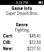 A simple tool for classic video game collectors that grabs the latest pricing information for NTSC N64 games! Uses PriceCharting.com for up-to-date pricing. Requires an active internet connection to retrieve pricing. ********************************** Version 0.3 * New Game information screen. * Fixed "First Person Shooter" genre not displaying correctly ********************************** Logos/Artwork by Gary McKelvy (http://vincentvangary.deviantart.com/) Note: This app is in no way affiliated with Nintendo.