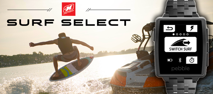Put control into the hands of the surfer with the Nautique Surf Select app which features the ability to display and control the boat speed, NSS, NCRS, stereo controls, and now ballast shift! The app also allows surfers to transfer the wave to either side at the press of a button. Instructions: Up Button: short press - perform different actions depending on the current page, long press - only on the Music page, will send a skip track command Middle Button: short press - cycle between the various pages Down Button: short press - perform different actions depending on the current page, long press - only on the Music page, will send a Play/Pause/Mute command