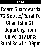 Shows the next available transit option to your favorite places on your cool pebble watch. The app is designed with a simpler interface on pebble and it doesn't require the user to open the Android App.