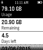 View your Internode usage information on your Pebble. Usage is checked hourly and cached by NodeUsage. Hold the center button to force a refresh.