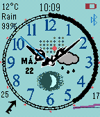 Universal Watchface: - same design and functionality on Pebble, Pebble Steel & Pebble Time - special mixed-color background (only Pebble Time) - analogue and digital clock - battery status - bluetooth status - mini calendar - month/day - moonface - sunrise/sunset (before and afternoon respectively) - weather: * temperature * icon & text * humidity % * wind speed & direction * air pressure current (last 2 digits) hPa and graph Currently not customizable, short month names in Hungarian only :-) *** EASTER EGG *** :-)