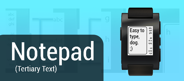 Notepad allows you to take notes directly on the Pebble! Using Tertiary Text it is possible to quickly type complete and full messages directly on your Pebble. Visit the site for more information on how to type with it. The keybindings become muscle memory in no time.