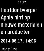 Met de NU.nl app voor Pebble, blijf je ook via het kleinste scherm op de hoogte van het laatste nieuws. Kies voor de rubrieken Net binnen, Algemeen, Economie, Tech, Sport, Entertainment en Overig, en klik op een titel van een artikel om het te openen. Klik op de knoppen aan de zijkant om naar beneden te navigeren.