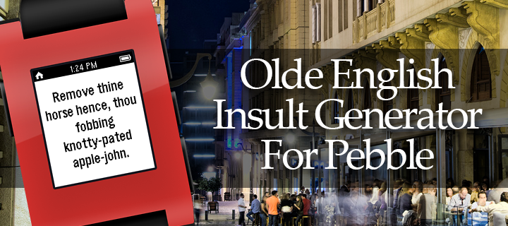 On the go and you run into an enemy! Have no fear! Get a classy insult with a click of a button on your Pebble. Get a new insult with every click for eternal verbal jousting.
