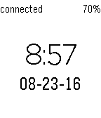 A simple watchface that features the date, the time, the current battery percentage, and whether or not Bluetooth is connected. Supports both 12 and 24hr time format.