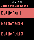 See how many people are playing the game on your wrist! List of the games available now: - Battlefront - Battlefield 4 - Battlefield 3 - Battlefield Hardline Stats powered by p-stats.com