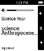 Orange Radio offers a free access to thousands of internet radio stations and shows. Remote control the app from your Pebble : browse the selection, listen to your favorites stations or shows and move easily from one station to another. At a glance on your watch, see what station, show or music is on. This Pebble application needs Orange Radio iOS 2.1.1 or superior application to work. This Pebble application needs Orange Radio Android 2.2.2 or superior application to work. Instructions : Up button : short press – volume, long press – previous station or show Middle button : short press – select and play/pause, long press – back to the station playing Down button : short press – volume, long press – next station or show