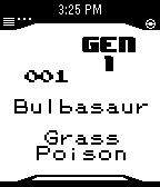 NOTE: No Update Soon Pebble-Dex is a update of Pokedex Kanto developed by Shutdown27! Base Code From Shutdown27! Controls: Up button to move up by 1 Down button to move down by 1 Press Middle button to toggle Type/Hight, and Weight Hold up to move up by 15 Hold down to move down by 15 Hold Middle button for random Pokemon! Credit to Shutdown27, The original Coder!