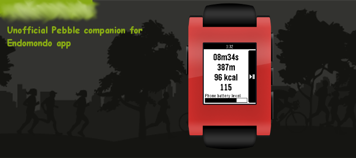 Features: - Showing Endomondo workout status (duration, distance, calories, heart rate) - Control of pause/resume workout (Android 4.3+ only) - Showing phone battery level Disclamer: Pebble Endomondo is not affiliated with Endomondo company. Endomondo and all other Endomondo product names are trademarks or registered trademarks of Endomondo.