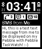 Pebble TaskWatch is a set of Pebble SDK 2 watchfaces customizable through Tasker You can associate any Tasker task with Top/Middle/Bottom Button Click/Double Click/Long Click You can add to the watchfaces icons and custom text layers editable from Tasker plugin Through the Tasker plugin you can: - Change Watch Face - Change icons and text of the text layers - Send an alert to Pebble - more...