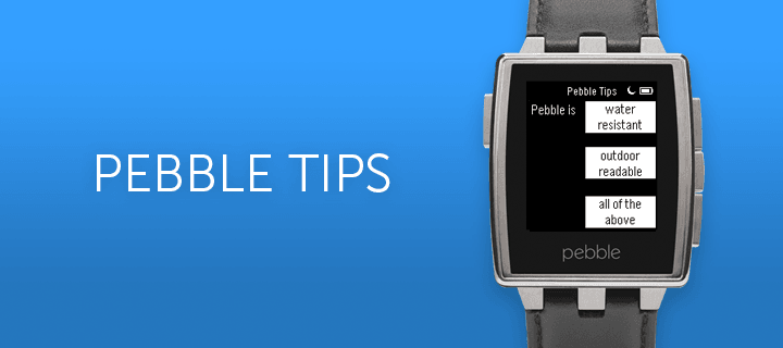 Learn about Pebble tips and apps, test your Pebble knowledge by answering Pebble questions right from your watch. Correct answers are submitted as contest entries (optional) for weekly prizes and a grand prize of an iPad. To opt into the contest, read and agree to the terms and conditions in the app settings page.