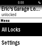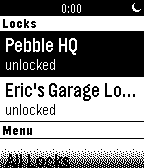 Control your Lockitron lock right from your Pebble! Built using Pebble.js and Cloudpebble.net. Thanks Huy and Katharine! No locks? remember to log in: My Pebble -> Pebbletron -> Settings Source: http://goo.gl/2iZdeG Known Bugs: - on-boot the mainMenu may hold the wrong state of each lock - mainMenu does not refresh after changing new favLocks - there's an extra window for some reason