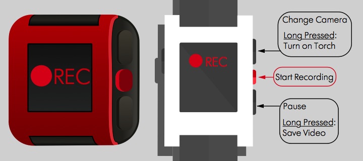 Now you can record, pause, resume, change front/back camera or even turn on iPhone's torch pressing the pebble buttons.