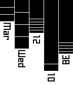 In order to grasp a lapse of time at a glance, elements are displayed in progress bar style. If a watch is worn on the left wrist, the left side of the display is hidden beneath the cuff. So in this watchface, the elements of time which we often want to know are arranged on the right side of the LCD. 1.1.0: Support 12-hour style.