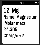 A list of all elements on the periodic table. When an element is selected, a detail card will show up.