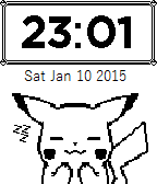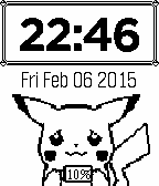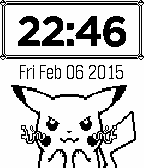 Pikachu right on your wrist! Goes to sleep at night and wakes up in the morning. Supports 24 hour and 12 hour settings. Displays when Bluetooth disconnected Changes faces when charging or low battery Text frame and sprites from original Game Boy Pokemon games. More features to come in future updates