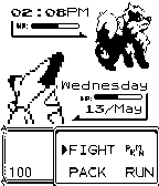 Simple Watchface of a Pokemon Battle. Displays the time, day of the week, day of the month, month, the percentage of battery (+ if charging), smiling and sad faces for when the watch is connected or disconneted through Bluetooth. The HP bars fill to show the progression of the day (enemy), and the progression of the week (yours). Vibrates on disconnect.