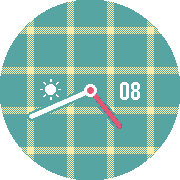 Plaidstyle, Developer Retreat 2015 Edition. Customize your pebble with your own stylized plaid color theme and easily share your recipe with other pebblers. Includes date and current weather condition icon. Configurable options: • Colors • Weather condition icon on/off • Hourly vibration on/off