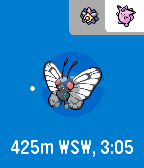 Hunt down nearby Pokemon! See directions to Pokemon around you, get notified when new ones pop up, and represent your team! Check out the settings page to customise your team and change your notification & filter settings. In the app, use the up and down buttons to scroll through pokemon, and the select button to pin and unpin. Hold select to dismiss a Pokemon, and hold up and down to change the priority. Shake your wrist to toggle between pokemon location, name, and current time. If no pokemon are nearby matching your filters, will show your team colours. Check out PokeWatch for the watchface version of this app, sans scrolling. PTR/OG Pebble support coming soon. See https://github.com/tetrapus/PoGoPebble/releases for pre-release builds for those platforms. Suggestions, patches and bug reports very welcome!