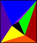 An analog watchface hidden in plain sight. The three vertices of the black triangle are the center of the watch, the hour hand, and minute hand -- in the first screenshot the time is 8:27. Even when the hour and minute hand align, the other triangles point to them to reveal the time -- the second screenshot is 9:15 and the third is 6:30.