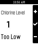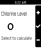 Easy to use chlorine leveler for your pool Just enter the chlorine level of your pool and hit select to see if your chlorine level is too high or low