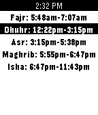 Pebble Round 2Shows all prayer times for your location, updated automatically.