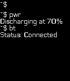 The first Pebble Command-Line Interface! Updated with new commands! Show of your tech skills with the first pebble CLI. Current commands: clr pwd date bt pwr whoami light [on/off] vibe [long/short] theme [light/dark] font [a/b/c/d/e] Now with Blinking Prompt! Feature Requests Temporarily Suspended (Work and School) Sorry :( Send Bug Reports to my Email and I will address them ASAP