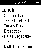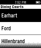 View the entire Purdue Dining Court menu right on your Pebble! - View the menu for all 5 of Purdue's Dining Courts - Displays "(NS)" when the dining court is not serving at that time Email me if you have any suggestions on what I should change/improve!