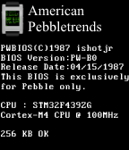 PW-DOS is a silly watchface for that small niche of individuals who enjoy modern wearable devices yet pine for the days of staring at a blinking command prompt. Day and month are reflected in major and minor version numbers (or vice-versa if you prefer!), and the files' timestamp shows the current time.