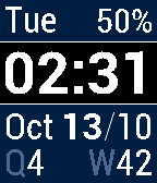 Displays quarter, week number, battery percentage (inverted when charging), weekday, month name, date, 24h time and shows an x while bluetooth connection is off / lost and vibrates. In its settings you can invert the colors and enable that shaking your wrist at startup will invert colors (while x blinks) on the fly. Known bug: Settings page isn't working on iOS (only on Android) - we're looking into it. Updates: We're considering a new "clean" mode (an option in Settings) where only the clock is shown and the date, week etc. are only visible for 5 seconds if you shake your wrist. Design: David Filskov Programming: Thor Muto Asmund