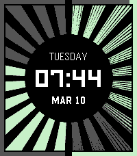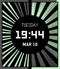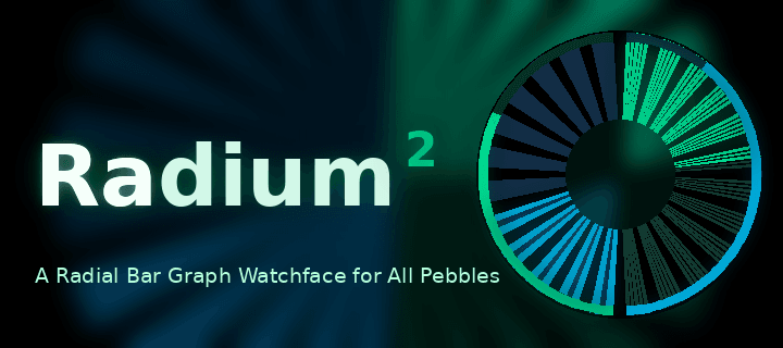 A radial bar graph watchface. Time and energy flowing around your wrist - Hours and minutes as arcs, with battery and steps on the outer ring. The left half of the face fills with hour blocks, one per hour, sweeping around clockwise from the bottom. The right half fills with minute ticks: 60 individual marks in groups of five, lighting up as each minute passes. The outer ring tracks step count toward your daily goal on the left side and battery level on the right. In the center, an optional overlay shows the time, day, and date as text. Shake to dismiss it and see the full radial display, a pure starburst of glowing geometry. Shake again to bring it back. (Or set the overlay to always-on or always-off in settings) Radium 2 is a complete rebuild of the original Radium watchface, designed for Pebble Time Round in 2015 and first published in 2016. Rebuilt for all Pebble platforms with 40 color presets and full per-element color customization. --- FEATURES - Radial bar graph display - hours on the left, minutes on the right - Shake to toggle overlay on/off (or set always-on / always-off) - Art mode: set overlay to Always Off for a pure full-face starburst - 24h mode: each hour slot splits into two half-segments - Outer ring: step count (left half), and battery (right half) - Optional outer ring: hide it and tick art extends to the screen edge - 40 color presets in five rows: Dark, Dark+, Light, Color, Special - Full per-element color customization: 12 independent color slots - B&W invert mode for Pebble Classic, Pebble 2, and Pebble 2 Duo PLATFORMS: Pebble Classic/Steel · Pebble Time/Steel · Pebble Time Round · Pebble 2 · Pebble Time 2 · Pebble 2 Duo · Pebble Round 2 --- 2015: Original Radium design by Sterling Ely 2016: Prototype implementation by MathewReiss; completed by MicroByte 2026: Radium 2 rebuilt by Sterling Ely & Claude (Anthropic) Feedback is appreciated: please hit me up at @sterlingely on Twitter/X with any bugs or feature requests!