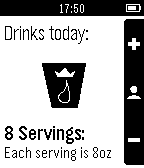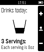 Reservoir will help you keep track of your daily water consumption habits and running statistics over time. We hope to make staying hydrated as effortless and entertaining as possible: say bye-bye to realizing after a workout or class period that you are parched! Our team hoped to tackle the growing trend of mild dehydration among Americans, by encouraging consistent water intake to reach the daily recommendation of 8 servings. Studies and our personal experience has shown huge impacts of dehydration vs staying hydrated including energy levels, muscle recovery, and brain functions. We hope to extend the benefits of increased water intake to you! Key features: Automatic reminder system: pings your watch if you have not drank water in a while! Streak counter: rewards you for consistently reaching the recommended daily serving! Ease-of-use: don't worry about a companion app, or bluetooth, or internet connection! Fun icons and images: just because! Perfect For Anyone! We encourage everybody to be more aware of their hydration habits. While certain groups like athletes, students, elderly, or those with an illness need to be very conscious of their water intake, everybody can use a hand (or a watch :) ) in being aware of how much they should be drinking. For those who are interested, you can read about the biology of our thirst drive and its faults here: http://www.nature.com/nature/journal/vaop/ncurrent/full/nature14108.html