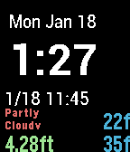 Watchface for monitoring your favorite USGS stream gauge. - Color coded local air and stream (if available) temperatures in either celsius or fahrenheit. - Stream level in either height or flow (CFS) - Get notifications on gauge updates if the river is "in play"