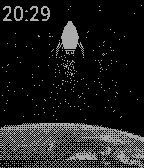 Pebble Round 2Rocket with particles moving around screen.