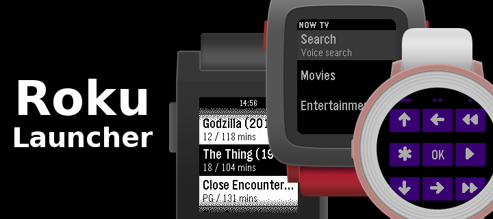 Channel launcher and eyes-free remote control for Roku and NOW TV. Launch NOW TV Movies and Entertainment, BBC iPlayer, and YouTube directly from your Pebble. Search by voice (supported models only) or by using Tertiary Text on older models (http://http://pebble.rickyayoub.com/). Use the Remote mode to play/pause etc directly from your watch. Using single press, double press, and long press for each button means there's no need to scroll through menus or switch modes to access remote functions, allowing for simple eyes-free control. Love Roku Launcher? Give it a heart! (Roku Launcher was previously known as NOW TV for Pebble)