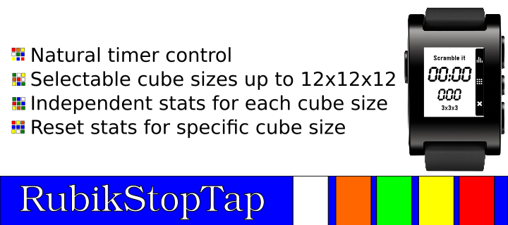 The best application to measure your time solving the Magic Cube, just select the size of your cube, Scramble your cube, shake your Pebble to start review time, when Pebble vibes start solving, when done shake your Pebble to stop the timer and Check your time, shake your Pebble to register your time and reset the timer. Now your Pebble is ready to start again and again. Keep track of your stats like average, best and worst times for each cube size independently and compare it with your friends. Happy solving!!