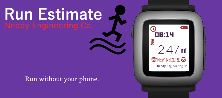 Run without your phone. Run Estimate is a simple app that uses your stride length and the number of steps you've taken since opening the app to give you an estimate of how far you've run. To use it, just open the app and start running! Run Estimate remembers the furthest distance you have run and gives you a nice notification whenever you beat that distance. It also gives you a few friendly messages along the way. Both Metric and Imperial units are supported and you can customize the colors from the configuration page within the Pebble app on your phone. From the configuration page you will also need to set your stride length in order for the app to give you a good estimation.