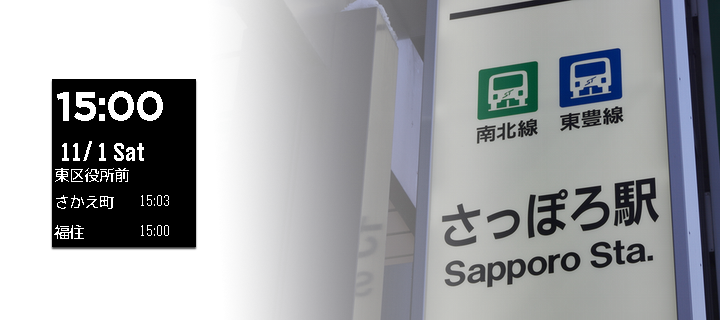 札幌の地下鉄の時刻を表示します。 一番近くの駅の次の出発時刻を表示します。 今のところ東豊線のみです。 This watchapp shows the subway of time of Sapporo. It displays the next departure time of the nearest station. **Currently only Sapporo subway toho line**