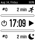 Yet another Pomodoro like timer. This time it can work either in the background (and will not drain the battery at all) or as a kind of watchface (draining the battery once a minute, like most of the watchfaces). It is possible to start the timer and quit the app using the BACK button. The app will wake up automatically when the "work" or "rest" events are finished, vibrate (depending on the event), will start the next event ("rest" or "work" respectively) and then will close itself in 5 - 20 sec (user settings) from that moment, until the next wakeup, or will switch to a watch-mode.