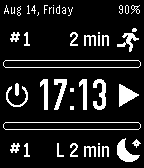 - SHAKE - hide the scipomodoro clock (not the watchface!) for a few seconds and show the current status of the (work or rest) timer