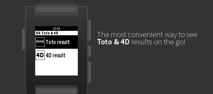SG Toto & 4D brings you the latest Toto and 4D results in Singapore. It is the most convenient way to see Toto & 4D results on the go! Please email me at [email protected] for any bug reports or suggestions. Note: This app is built with PebbleJS beta SDK, it requires bluetooth connection between Pebble and phone, as well as Internet connection.