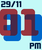 Large digits with a neat overlap effect between the hours and minutes. Configurable colors, and options to display date, steps, or battery in the corners.