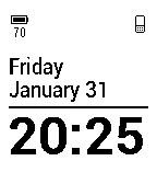 Simple watchface based on simplicity. Features: * battery-efficient rendering * week day display * battery indicator * bluetooth indicator * connection break indicator and vibe * easy colors inversion To change the background tap or shake a watch in first 2 seconds after watchface start (e.g. go to pebble menu, press back and shake)